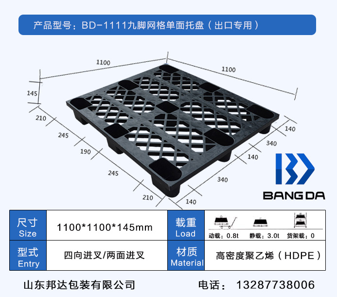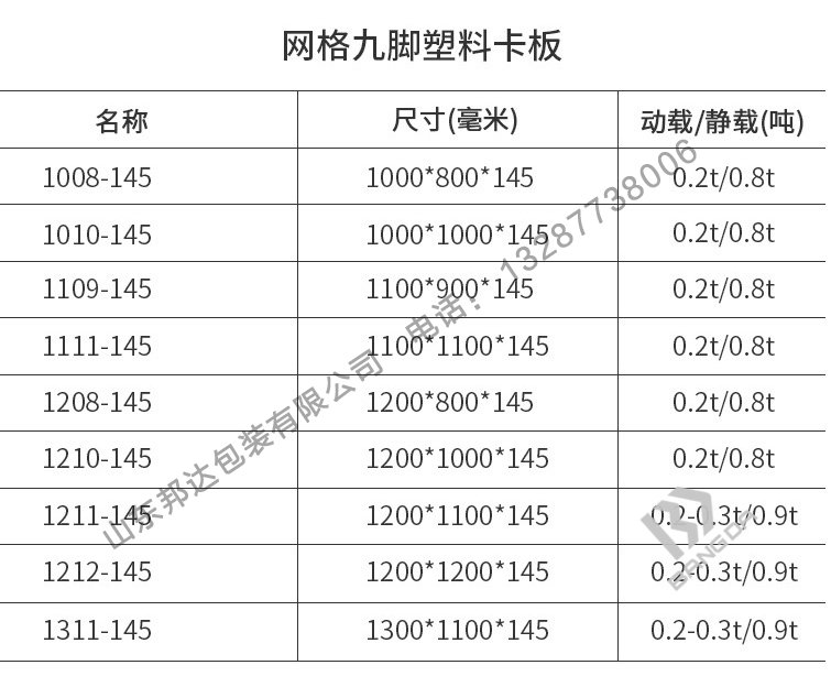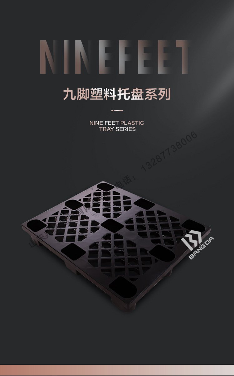 注:九腳網(wǎng)格托盤內部可加入鋼管,是為了達到增加承載的目的,延長托盤的使用壽命,塑料托盤如要在低溫環(huán)境中長期使用,要選擇全新料生產的產品。