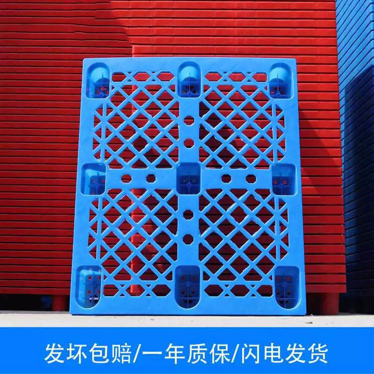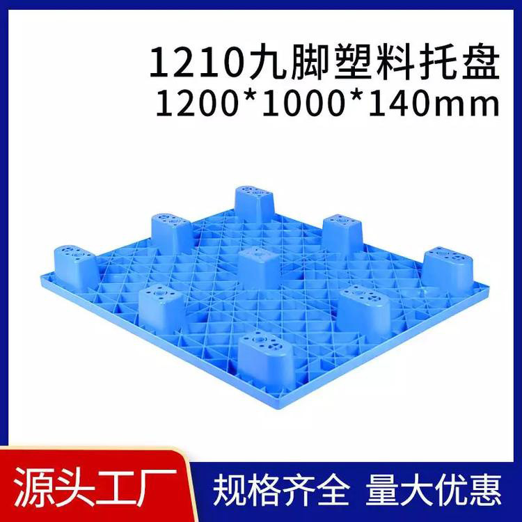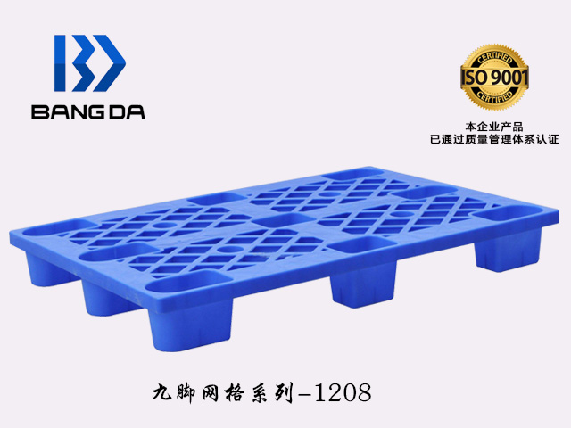 九腳網格塑料托盤:九腳網格托盤其底部是有‘九個腿’組成的,表面為‘網格’狀,九腳網格托盤大多型號的都為輕型的塑料托盤,外觀整潔,易清洗易消毒;耐酸堿,耐腐蝕,可在多種特殊場合使用,無毒無味,利于倉庫環境改善,不會對貨物尤其是食品有任何污染,同時托盤不助燃,無靜電火花,對倉庫防火有一定作用。